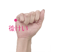 手を開いて上に向け小指側の手首の付け根から腕方向に1.5センチ下にあるツボ。